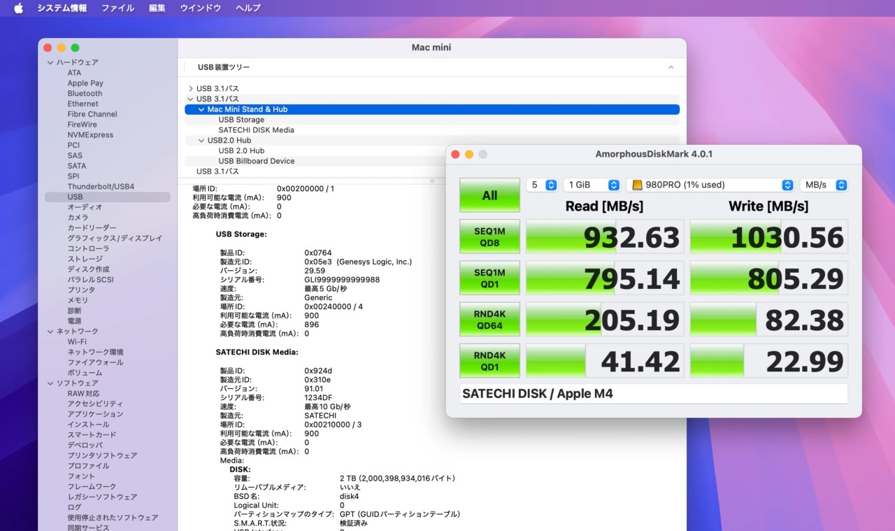 これらの製品の多くは、Apple公式のSSDアップグレード価格が高額であることから、コストを抑えたいMac miniユーザーの需要に応えるべく、NVMe SSDスロットを搭載しています。しかし、USB-CハブにNVMe SSDスロットを統合する構造では、USB 3.2 Gen 2(最大10Gbps)接続帯域を共有せざるを得ず、SSD本来の性能が活かされにくいという課題が存在していました。